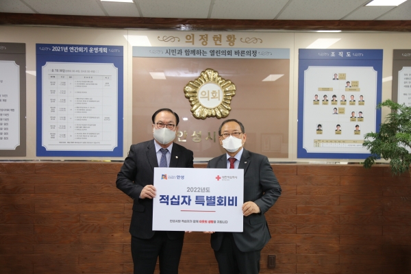 [충청뉴스큐] 안성시의회는 5일 의장 집무실에서 대한적십자사에 2022년도 적십자 특별회비를 전달했다고 밝혔다.