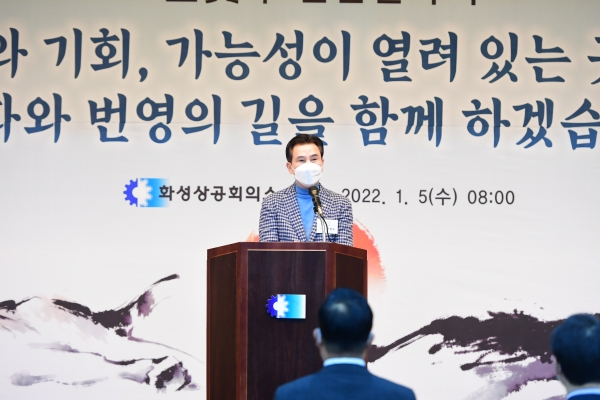 서 시장은 5일 화성상공회의소 컨벤션홀에서 열린 ‘2022년 화성상공회의소 신년인사회’에 참석해 “코로나19로 위축된 지역 경제를 살리고 새로운 기회를 만들 것”이라며 포부를 밝혔다.