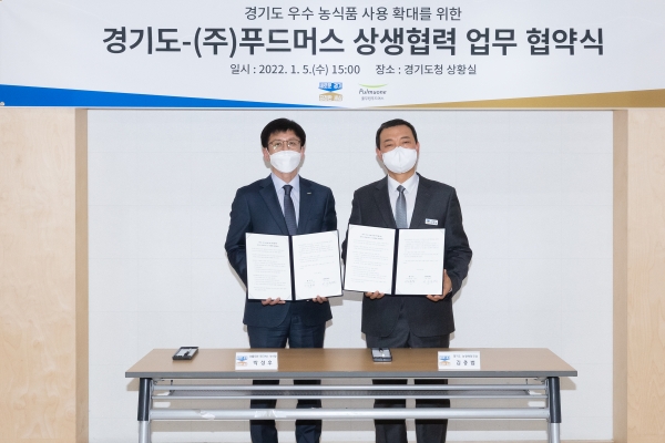 [충청뉴스큐] 경기도는 풀무원 계열 식자재 유통기업 ㈜풀무원푸드머스와 지난 5일 경기도청에서 도 생산 우수 농식품 사용 확대를 위해 상생협력 업무협약을 체결했다고 6일 밝혔다.