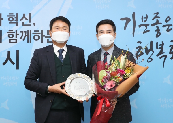 [충청뉴스큐] 서철모 화성시장은 6일 경기화성바이오밸리기업인협의회로부터 감사패를 전달받았다.