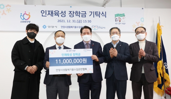 [충청뉴스큐] 안양시 인재육성재단은 지난해 12월 31일에 안양시 생활폐기물수집운반협회가 저소득층 가정 학생들을 위해 장학금 1100만원을 기탁했다고 밝혔다.