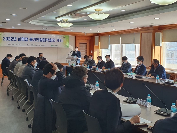 [충청뉴스큐] 대구시는 지난 1월 6일 오후 2시 시청별관 대회의실에서 구·군, 수급조절기관, 유통업체 관계자 30명이 참석한 가운데 설 명절 대비 물가안정 대책회의를 개최했다.