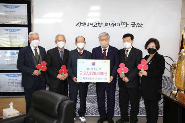 군 관계자는 "매년 나눔을 실천하며 지역 어르신으로서 모범을 보여주시는 대한노인회 금산군지회에 늘 감사드린다"며 “금산의 꿈나무들인 아이들이 행복하게 성장할 수 있도록 기탁받은 성금을 잘 전달하겠다”고 전했다.