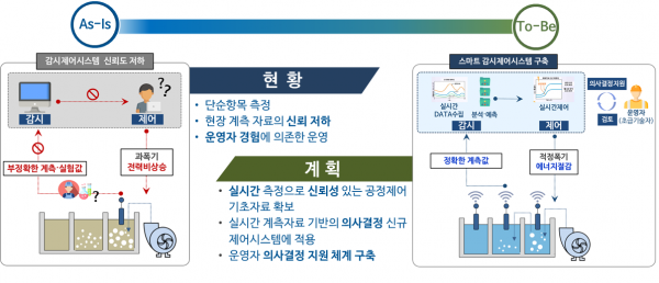 그동안 운영자 경험에 의존하던 운영방식에서 탈피해 축척된 빅데이터를 활용한 최적의 의사결정 지원과 자동계측 및 제어시스템 구축으로 안정적인 방류수 수질 확보와 에너지를 절감에 기여하는 지능화 사업이다.