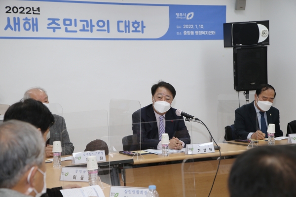 한범덕 청주시장은 “지난 2년 동안 방역의 조력자를 넘어 핵심 주역이 된 여러분의 시민의식이 있었기에 잘 이겨내 왔으며 앞으로 반드시 극복할 수 있다는 희망이 있다”며 “이번 만남을 통해 주민분들의 크고 작은 목소리에 귀 기울여 함께 한 걸음 도약하는 한 해가 되도록 할 것”이라고 밝혔다.