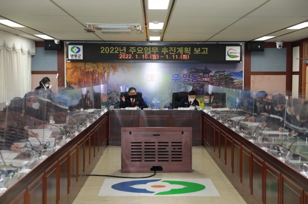 군은 지난 10일부터 11일까지 군청 상황실에서 각 부서별로 주요 현안사업의 중단없는 추진과 체계적 전략 목표 설정을 위한 2022 주요업무 추진계획 보고회를 가졌다.