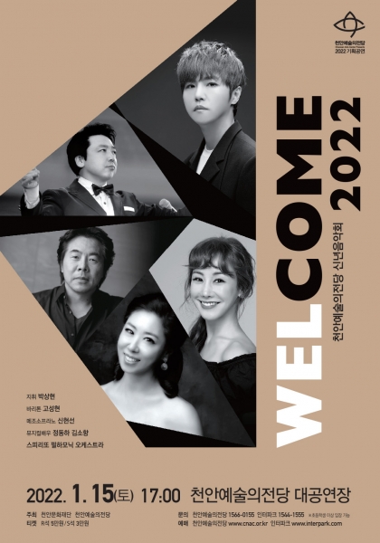 [충청뉴스큐] 천안문화재단은 임인년 새해를 맞아 오는 15일 오후 5시 천안예술의전당 신년음악회 ‘웰컴2022’를 천안예술의전당 대공연장에서 개최한다고 밝혔다.