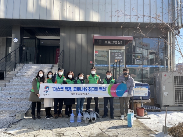 정하종 용이동장은 “코로나19 위기 극복을 위해 겨울철 한파 속에서도 방역활동을 해주신 용이동 지역자율방재단 회원님들께 진심으로 감사드리며 확산세 차단을 위해서 마스크 착용 등 방역수칙을 준수해 주실 것을 당부드린다”고 말했다.