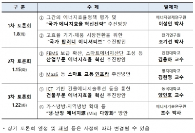 먼저, 1차 토론회에서는 에너지경제연구원에서 “국가 에너지효율 혁신전략” 기본방향을, 전기연구원에서 국가 탑러너 이니셔티브 추진방안을 발표하고 논의했다.