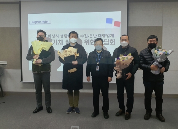 [충청뉴스큐] 화성시가 12일 화성종합경기타운에서 생활폐기물 수집·운반 대행업체 12개사 대표와 함께 간담회를 열었다.