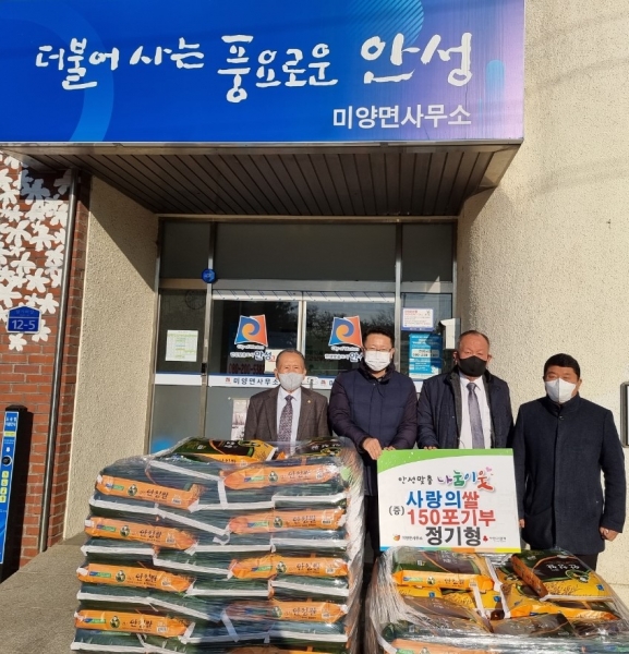 이번 기탁물품은 지역 농가에도 도움이 되고자 안성에서 수확한 쌀을 직접 구입해 마련했으며 각 마을 이장들이 추천한 지역 내 소외계층에게 전달될 예정이다.