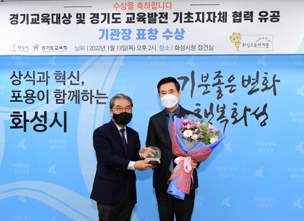 이날 이재정 경기도 교육감은 직접 화성시를 방문해 ‘제37회 경기교육대상 교육협력분야 표창’과 ‘2021년 경기도 교육발전 기초지자체 협력사업 유공 기관장 표창’을 수여했다.