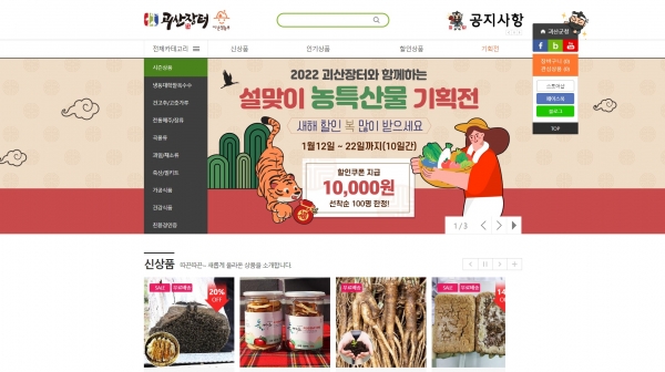 [충청뉴스큐] 충북 괴산군이 직접 운영 중인 농·특산물 직거래 쇼핑몰 ‘괴산장터’가 성장세를 이어가고 있다.