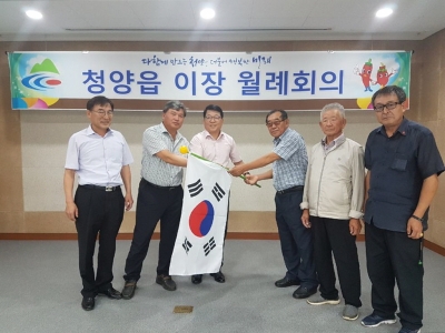 [충청뉴스Q]대한광복회 청양군지회가 지난 13일 읍사무소 대회의실에서 청양읍이장협의회에 태극기 2200개를 전달했다.