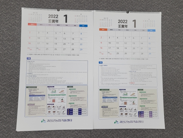 이에 농업기술센터에서는 농촌진흥청 등의 자료를 토대로 괴산군 지역 실정에 맞춘 농작업 일정을 월별로 정리해 고추·배추달력 각 1,000부를 제작·배부했다.