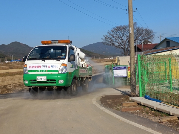 군은 지난해 10월 14일부터 가금농장을 대상으로 철새도래지 진입금지 특정차량외 농장진입금지 진입가능차량은 고정소독기 통과 후 고압분무기로 2단계 소독 등 15개 행정명령을 발령하고 전담관을 통해 가금농장 방역수칙을 수시로 지도 및 점검 중이다.