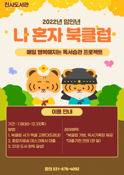 [충청뉴스큐] 안성시 진사도서관은 새해를 맞이해 성인들의 자발적 책 읽기 습관 형성과 독서에 대한 흥미를 유발하기 위해 ‘나 혼자 북클럽’을 실시한다고 오는 14일 밝혔다.