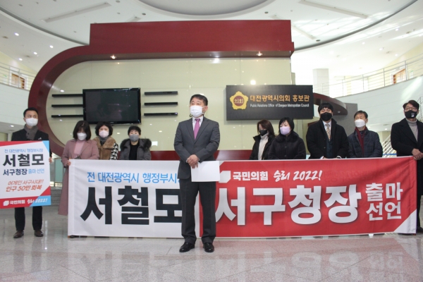 [충청뉴스큐] 서철모 전 대전시 행정부시장이 17일 오전 10시 대전시의회에서 국민의힘 소속으로 대전 서구청장 출마 기자회견을 열고 본격 행보를 예고했다.