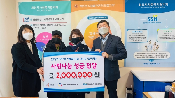 [충청뉴스큐] 화성시 여성단체협의회가 지난 14일 화성시에 저소득 미취학아동을 위한 후원금을 전달했다.