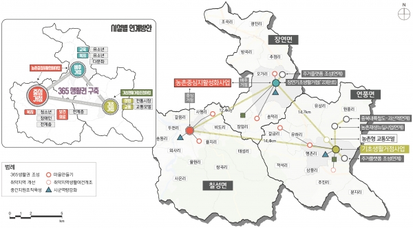 군은 농촌정주여건개선, 농촌경제활력 제고 지역공동체 활성화를 목표로 농촌지역에 부족한 문화, 복지, 교육 등의 생활서비스 공급 거점을 조성하고 접근성을 높여 주민의 삶의 질을 향상시킨다는 계획이라고 전했다.