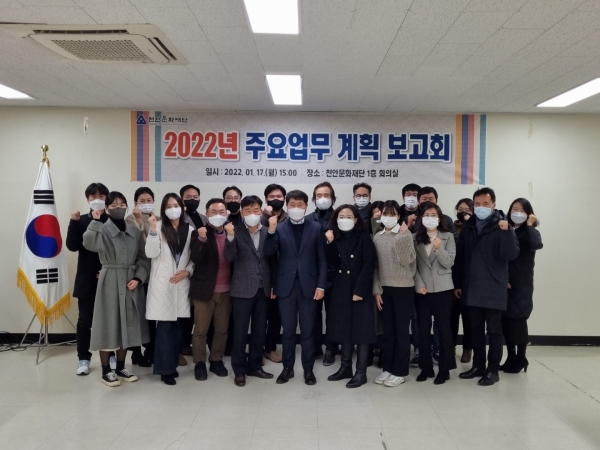 [충청뉴스큐] 천안문화재단은 지난 17일 재단 회의실에서 코로나19로 위축된 시민들의 삶을 문화예술로 위로하고 활력을 선사하기 위해 ‘2022년 주요업무 계획’ 보고회를 열고 변화와 도약의 새로운 한 해를 다짐했다.
