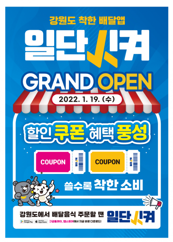 [충청뉴스큐] 강원도는 오는 1월 19일부터 춘천, 철원, 화천, 고성, 양양군 등 5개 시군에서 일단시켜 서비스에 합류하면서 지난 ‘20년 12월 배달앱‘일단시켜’를 시범 오픈한지 1년여 만에 18개 전 시군으로 서비스에 돌입한다고 밝혔다.