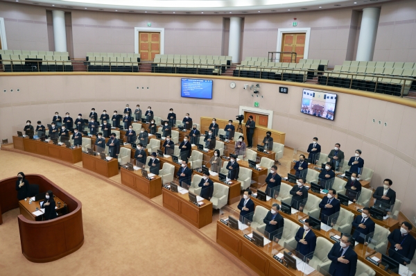 이날 제1차 본회의에서는 시와 교육청의 금년도 주요업무 보고를 청취했고 오광영 의원이 대표발의한 ‘한국전쟁 종전선언 및 평화협정 체결 촉구 결의안’을 의결했다.