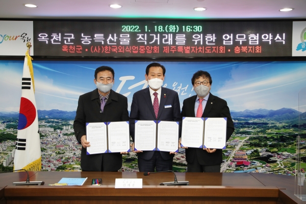 한국외식업중앙회 충북지회와 제주특별자치도지회에서는 옥천군의 직거래가 원활하게 추진될 수 있도록 홍보와 업무 지원에 협력하기로했다.