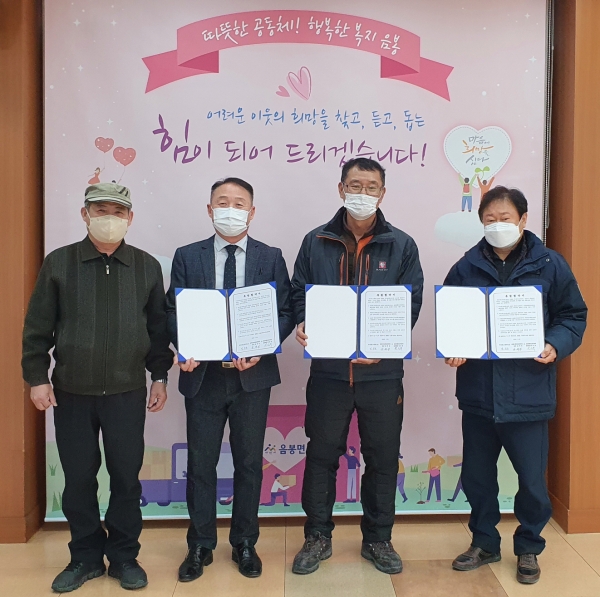 [충청뉴스큐]음봉면 행복키움추진단이 지난 20일 음봉면 의식리에 거주하는 박상균 씨와 찾아가는보건복지사업 활성화를 위한 후원 협약을 체결했다.