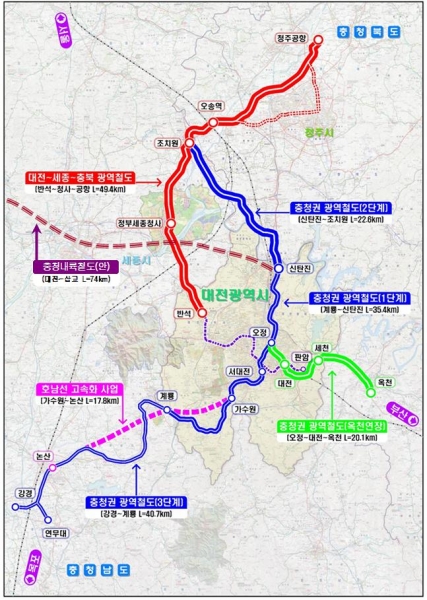 [충청뉴스큐] 대전시는 충청권 4개 시·도가 공동으로 추진하고 있는 충청권 메가시티 핵심사업인 ‘대전중심 광역철도 구축사업’를 확대해 추진한다고 밝혔다.