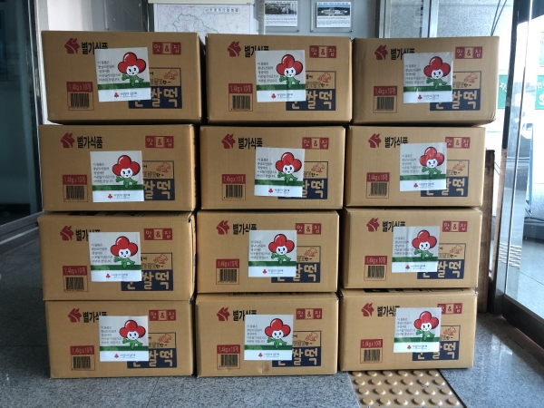 별가식품은 작년에 이어 올해도 떡국 떡을 전달했으며 이날 기탁받은 떡은 충남사회복지공동모금회를 통해 입장면의 취약계층 150세대에 전달할 예정이다.