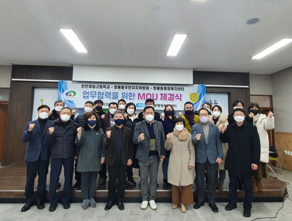 [충청뉴스큐] 천안시 청룡동주민자치위원회는 지난 21일 천안제일고등학교와 지역사회 발전과 학생들의 학업 지원을 위해 업무협약을 체결했다고 밝혔다.