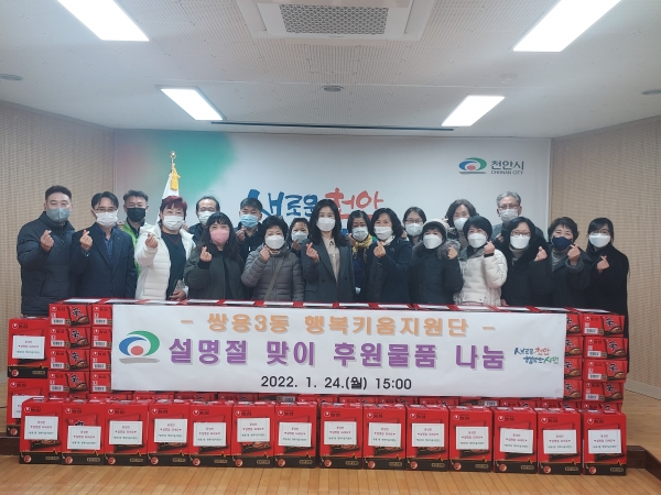 [충청뉴스큐] 천안시 쌍용3동 행복키움지원단은 지난 24일 2022년 1분기 정기회의를 진행하고 설 명절맞이 후원물품 전달식을 진행했다.