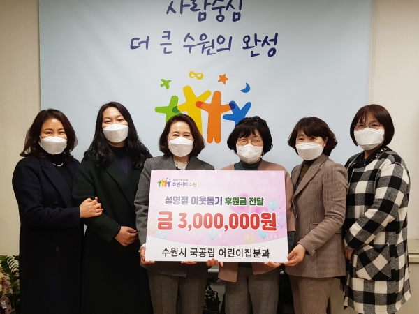 [충청뉴스큐] 수원시 국공립어린이집 단체가 설 명절을 앞두고 “경제적으로 어려운 이웃들에게 전달해 달라”며 수원시에 300만원을 기부했다.