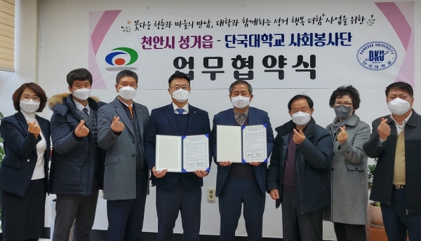 [충청뉴스큐] 천안시 성거읍과 단국대학교 사회봉사단이 지난 25일 ‘대학과 함께하는 성거 행복 더함 사업 업무협약’을 체결했다.