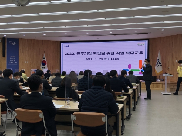 [충청뉴스큐] 논산시가 25일 설 명절을 앞두고 각 부서 및 읍·면·동 주무팀장을 대상으로 복무 교육을 실시하고 공직기강 확립에 나섰다.