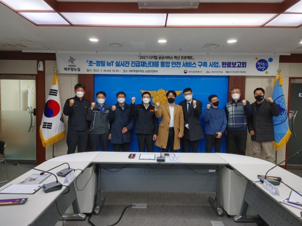 [충청뉴스큐] 재난현장에서 골든타임을 확보하기 위해 제주형 디지털 뉴딜 사업으로 추진한 ‘긴급 재난대응 안전서비스 구축사업’ 완료보고회가 26일 개최됐다.