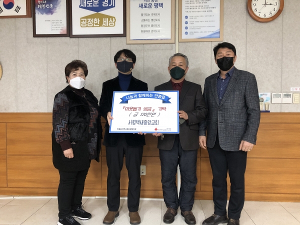 서평택 새중앙교회 관계자는 “2022년 새해에도 주변 이웃과 나눌 수 있어 행복하며 성도들의 따뜻한 마음이 담긴 후원금이 소외된 이웃들에게 도움이 될 수 있기를 바란다”며 “앞으로도 지역사회를 위해 지속적인 나눔 활동에 앞장서겠다”고 말했다.