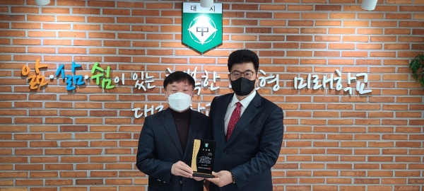 대지중학교는 2019년부터 지난 3년간 미래학교 공간혁신을 통해 교실 공간 재구성, 러닝센터 설치, 다목적 체육관 증축 등 도심형 미래학교 구축사업을 실시해 왔으며 원활한 사업추진과 예산 확보 등에 도움을 준 남종섭 위원장의 공로에 감사를 표했다.