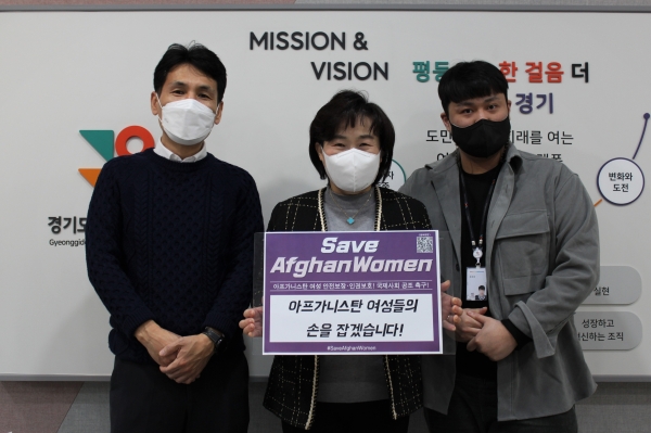 [충청뉴스큐] 경기도여성가족재단은 27일 정정옥 대표이사가 아프가니스탄 여성 인권 보장을 위한 국제사회의 공조를 촉구하는 ‘세이브 아프간 위먼 챌린지’에 동참했다고 밝혔다.