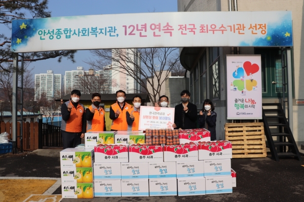 한국전력공사 안성지사는 2004년부터 안성종합사회복지관에 지속적인 후원을 이어오고 있는데, 이번 설엔 지역사회 내 취약계층에게 전달해달라며 사과, 배, 곶감을 후원했다.