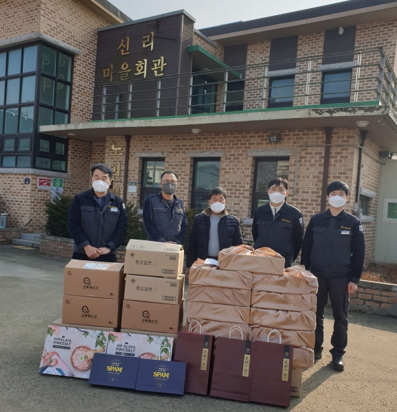 [충청뉴스큐] 평택시 진위면 소재 영풍제지는 2022년 설을 맞아 진위면 하북1·3리, 신리의 저소득층 독거노인, 한부모·장애인 가구, 차상위 계층 등 35가구에 설 선물세트를 전달했다.