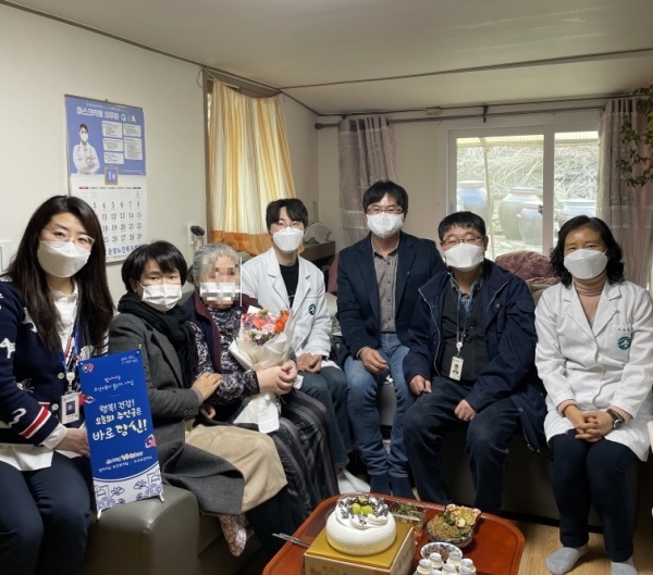 생신을 맞은 장OO 어르신은 “혼자 지내는 시간이 많아 우울했는데 이렇게 찾아와 건강상담도 해주고 정성 가득한 생일상과 선물을 주니 너무 감사하다. 앞으로도 오늘처럼 밝게 지내도록 노력하겠다”고 말했다.