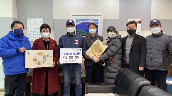 [충청뉴스큐]지난 26일 나눔터봉사단이 탕정면 행복키움추진단에 후원물품을 전달했다.