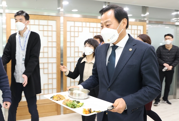 경기도의회 식구들 모두 식사 맛있게 하세요”며 구내식당 운영개시에 따른 소회를 전했다.