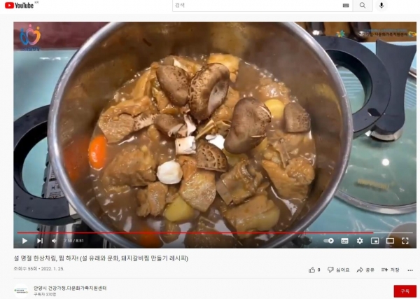 센터를 이용하는 중국 출신 결혼이민자 A씨는 “설날에 시댁에 갈 때마다 시어머님이 갈비찜을 해주셔서 맛있게 먹었던 기억이 있는데, 이번에는 직접 갈비찜 요리를 가족들에게 만들어 줄 수 있어 기쁘고 뜻깊은 시간이었다”고 소감을 밝혔다.