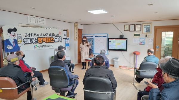 [충청뉴스큐] 천안시 성거읍은 지난 27일 사회적 거리두기가 강화됨에 따라 QR코드를 사용하는 데 어려움을 겪는 어르신들을 위해 경로당에서 ‘찾아가는 방역패스 교육’을 실시했다고 밝혔다.