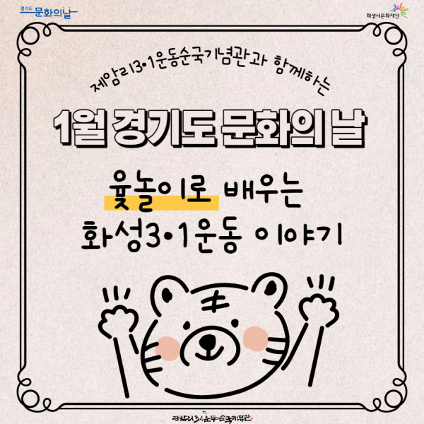 이번 경기도 문화의 날 운영 기간에는 설 연휴가 포함되어 있어 전통민속놀이를 활용한 ‘윷놀이로 배우는 화성3.1운동’ 이벤트를 진행한다.