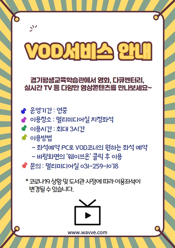 [충청뉴스큐] 경기평생교육학습관이 최신 정보와 다양한 멀티미디어 콘텐츠를 신속하게 제공하기 위해 주문형 비디오 시스템을 운영한다고 3일 밝혔다.