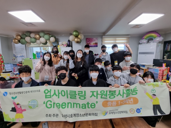 [충청뉴스큐] 안양시청소년재단 산하 호계청소년문화의집은 1월 24일부터 28일까지 5회기에 걸쳐 관내 중학생을 대상으로 겨울방학 자원봉사활동‘그린메이트’ 프로그램을 운영했다.
